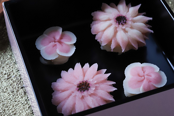 材料に、卵、小麦は使いません。お花やワンちゃんは、実は餡子!